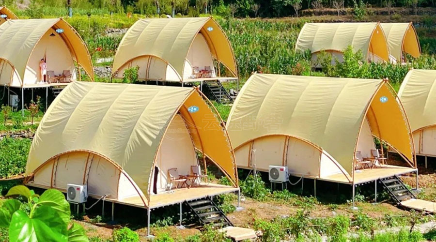 在融合自然的基础上,高端营地酒店帐篷的设计同样注重奢华体验的打造。这不仅仅体现在内部装修的豪华与精致上,更在于对细节的关注与品质的追求。从舒适的床铺、高品质的寝具到先进的温控系统、智能化的娱乐设施,无一不体现出对游客舒适度的极致关怀。同时,帐篷内部的空间布局也经过精心设计,既保证了私密性,又提供了宽敞的活动空间,让游客在享受自然美景的同时,也能享受到家一般的温馨与便利。高端营地酒店帐篷的设计还体现了科技与自然的完美结合。在追求奢华体验的同时,设计师们也会融入最新的科技元素,如智能照明系统、环境监测系统等,为游客提供更加便捷、智能的住宿体验。同时,这些科技的应用也充分考虑到了环保与可持续性,确保在享受奢华的同时,不会对环境造成过大的负担。